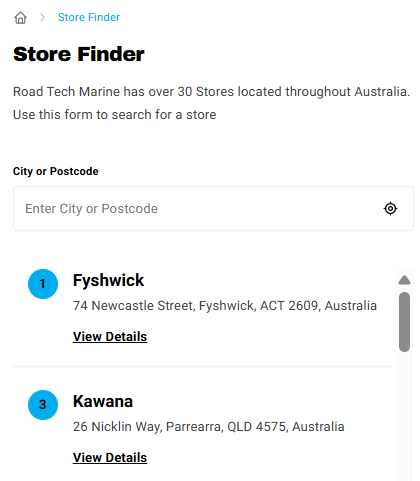 Please visit the Store Finder and type in your location. Choose the location from the list.